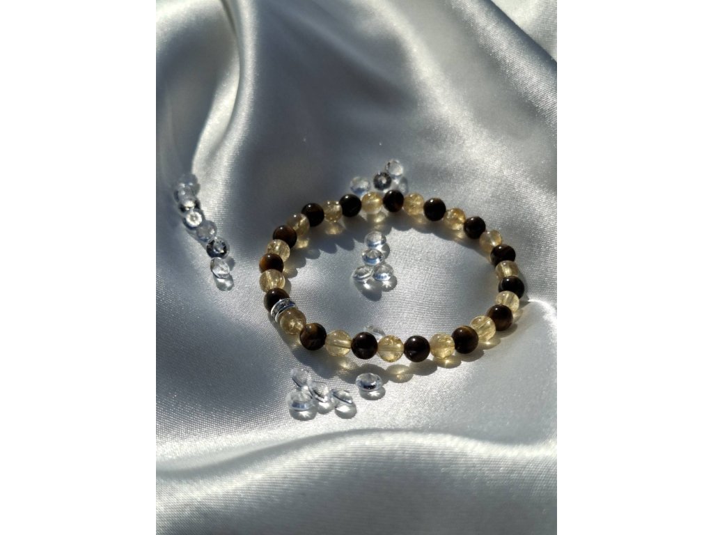 Energie náramku: Tento náramok je stvorený pre tých, ktorí chcú privolať do svojho života hojnosť, prosperitu a pozitívnu energiu. Kombinácia tigrieho oka a citrínu prináša silnú ochranu, vytrvalosť a podporu pre dosiahnutie finančnej stability a úspechu. Pomáha zvyšovať sebavedomie, otvára cestu k novým príležitostiam a podporuje pozitívne myslenie.