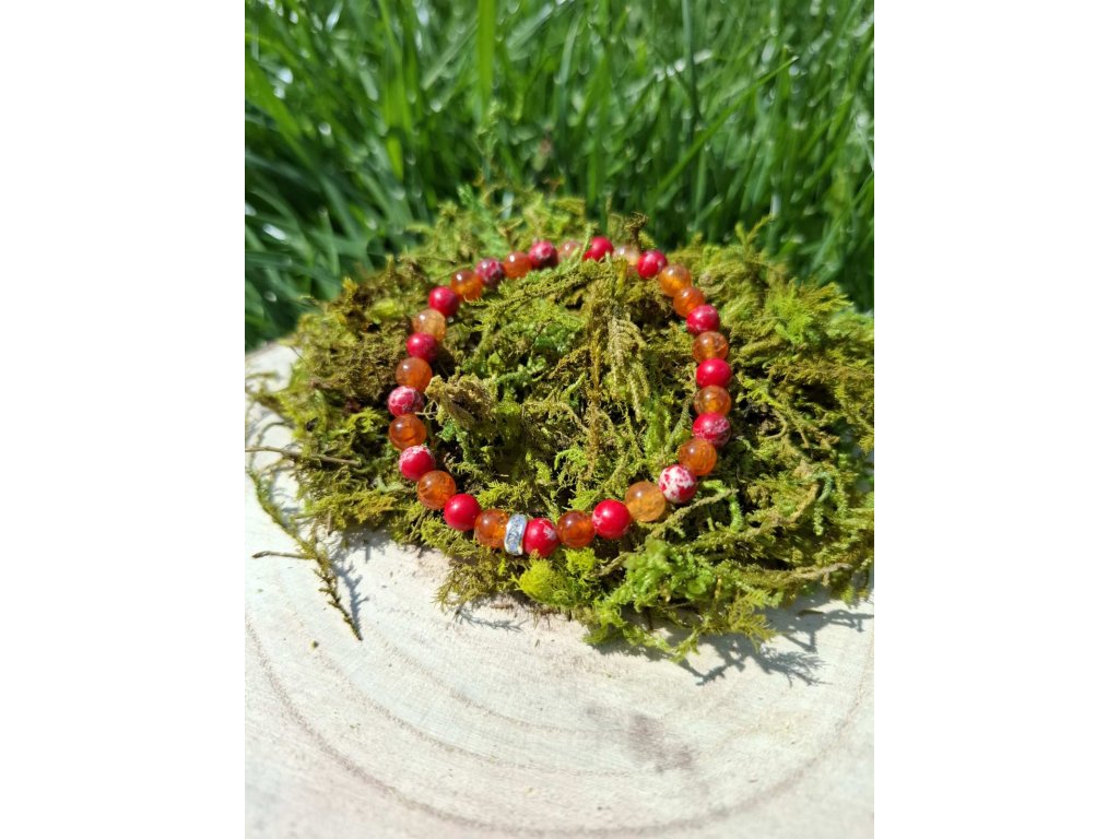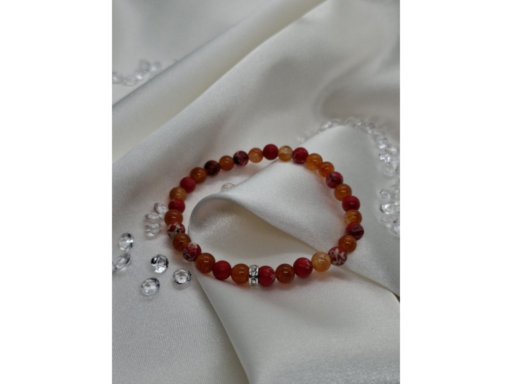 Tento náramok je stvorený pre tých, ktorí chcú prebudiť svoju vnútornú vášeň, životnú iskru a pevnú vôľu. Kombinácia červeného jaspisu a karneolu posilňuje sebadôveru, prináša odvahu ísť za svojimi túžbami a podporuje vitalitu na všetkých úrovniach.