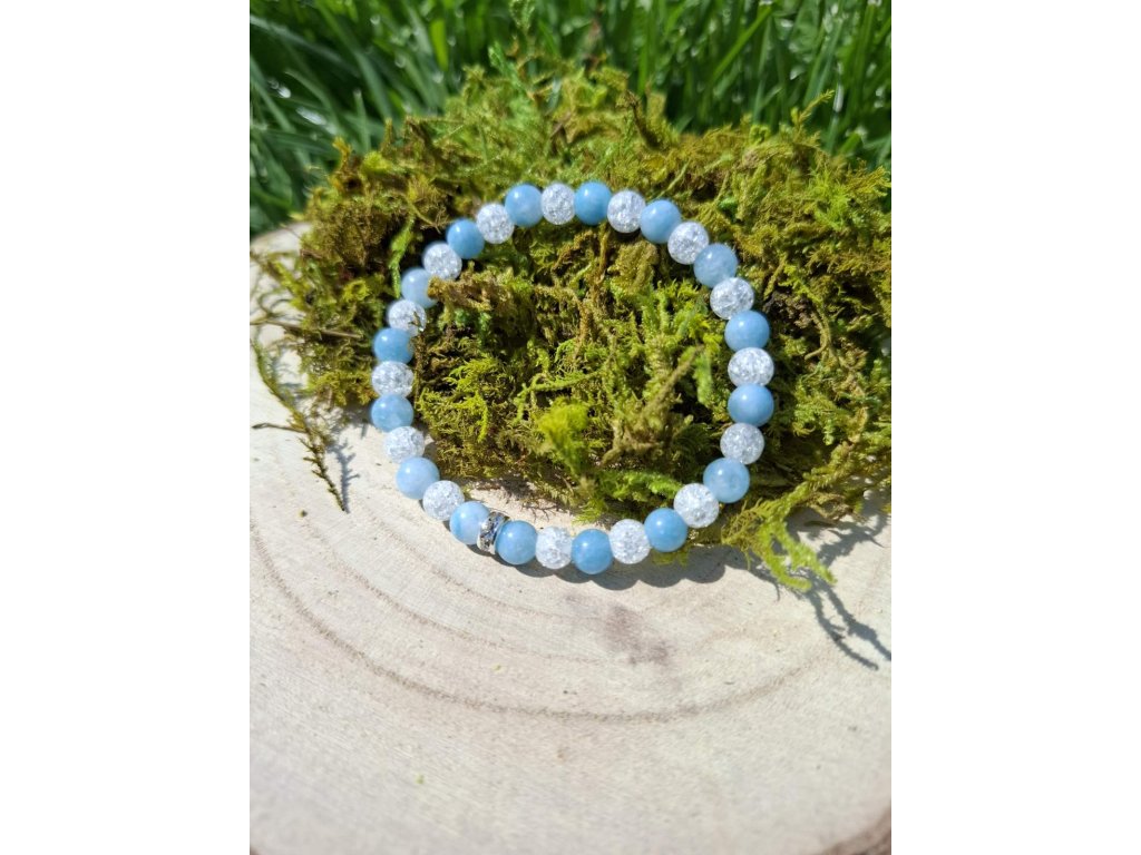 Krištáľ – zosilňovač energií a univerzálny harmonizátor. Čistí a posilňuje pozitívne vibrácie akvamarínu a podporuje celkovú jasnosť a duchovné prepojenie.
