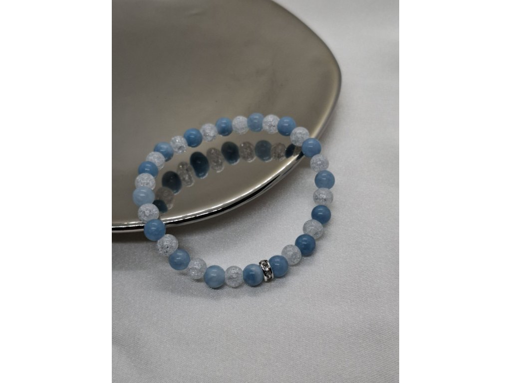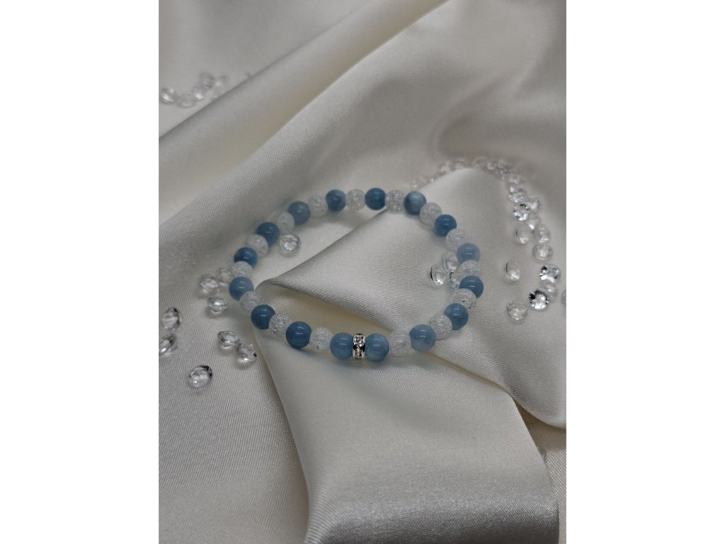 Tento náramok je stvorený pre tých, ktorí túžia po vnútornom pokoji, emocionálnom uvoľnení a sile vyjadriť svoju pravdu. Akvamarín vnáša jasnosť, odvahu a pokoj do každodenného života a pomáha rozpustiť staré presvedčenia, strachy a bloky v komunikácii.